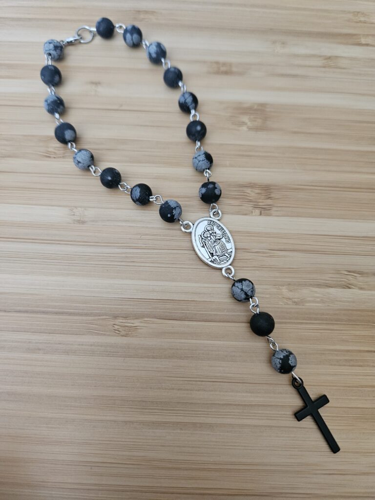 Růženec do auta s černým křížkem a z drahých kamenů- Obsidián vločkový.