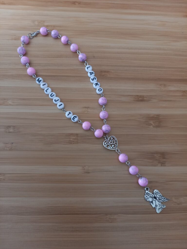 Růžový růženec do auta Miluji Tě lásko